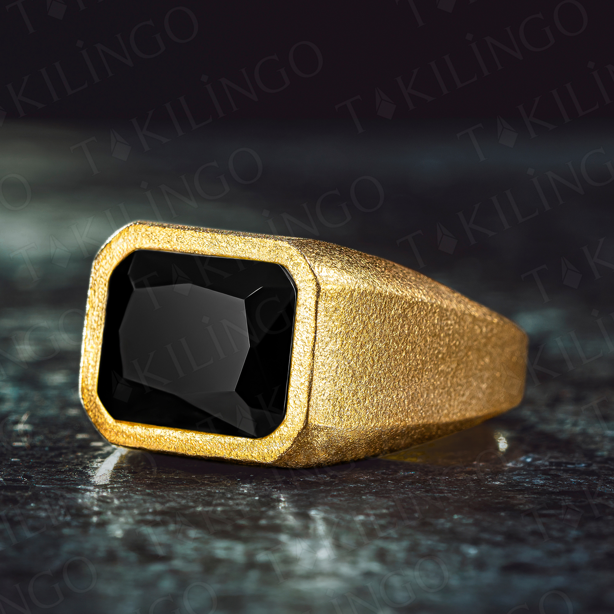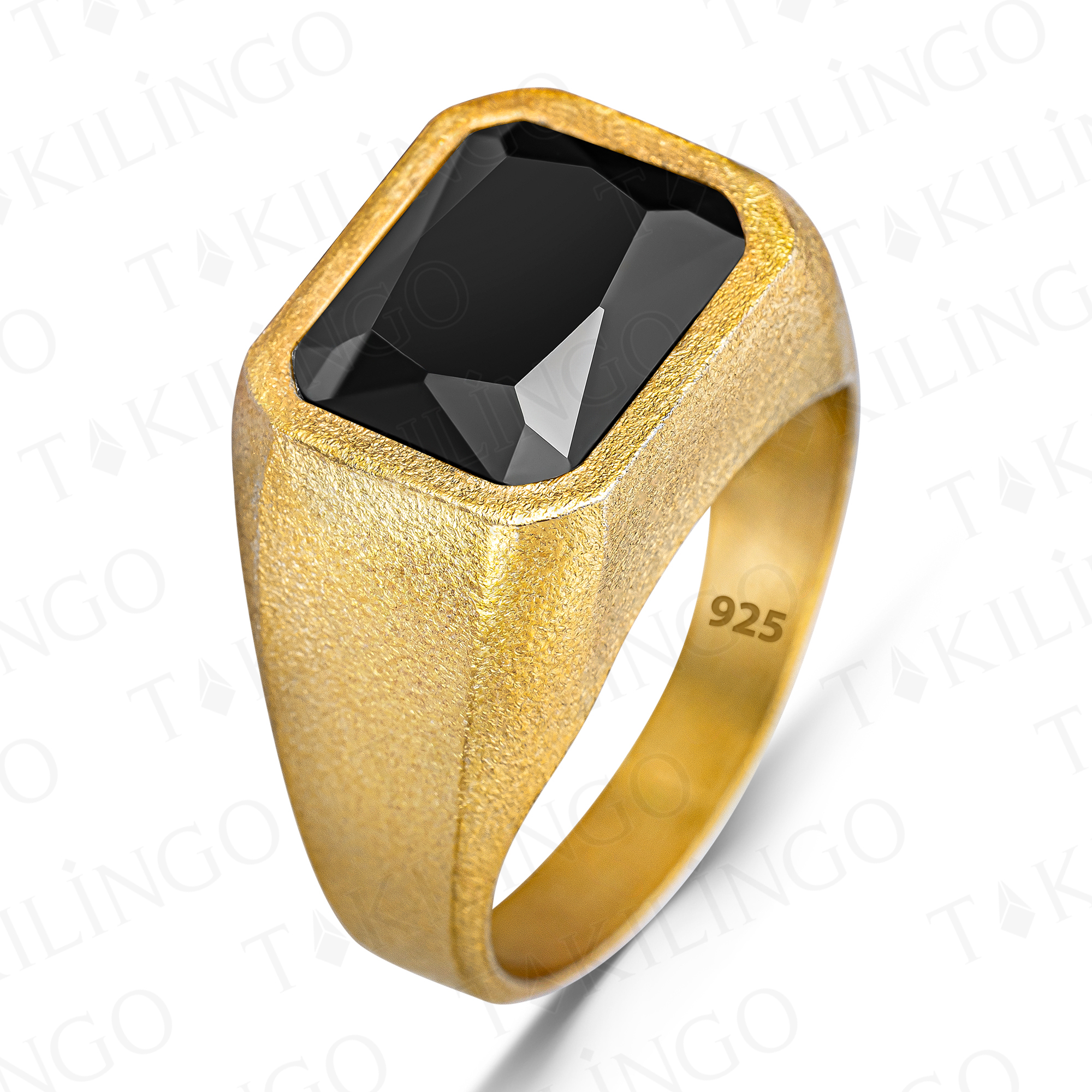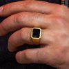 925 Ayar Gümüş Altın Kaplama Siyah Zirkon Taşlı Sade Erkek Yüzük