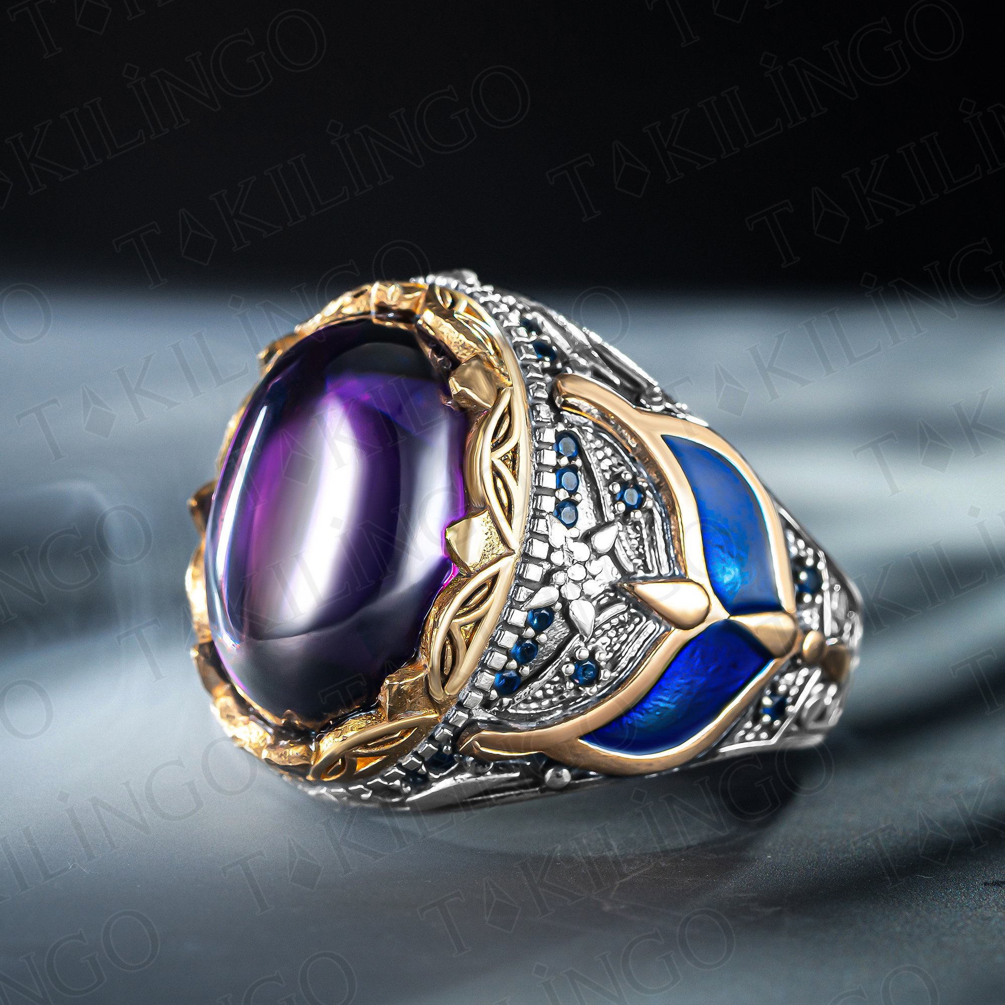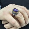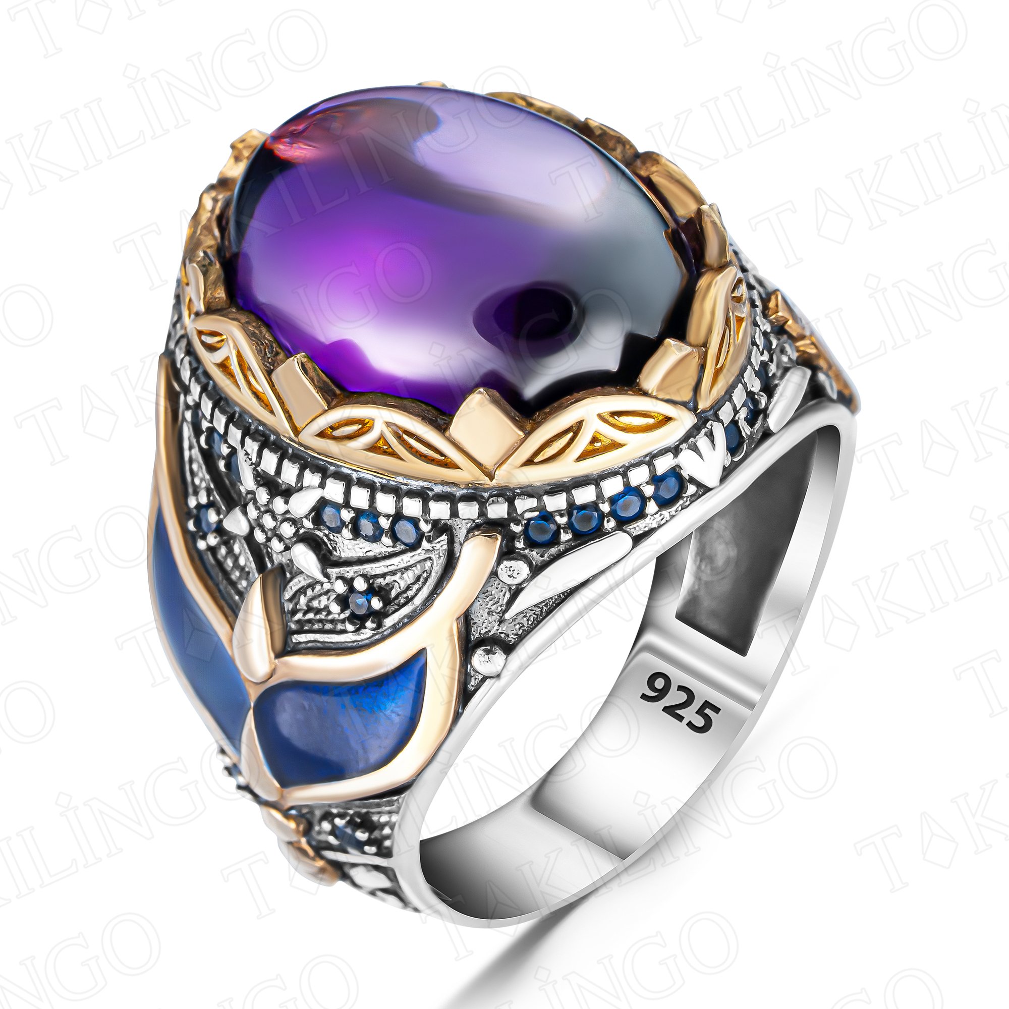 925 Ayar Gümüş Ametist Taşlı Usta işi Erkek Yüzük