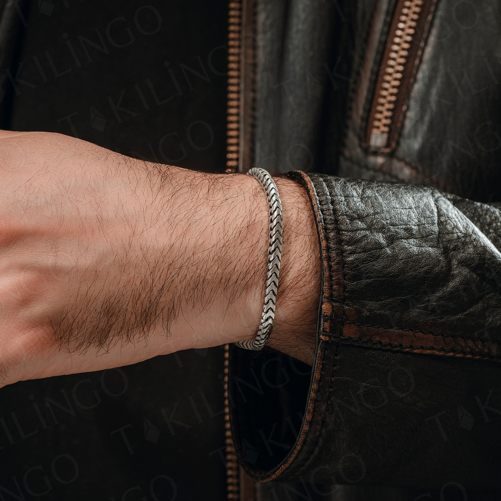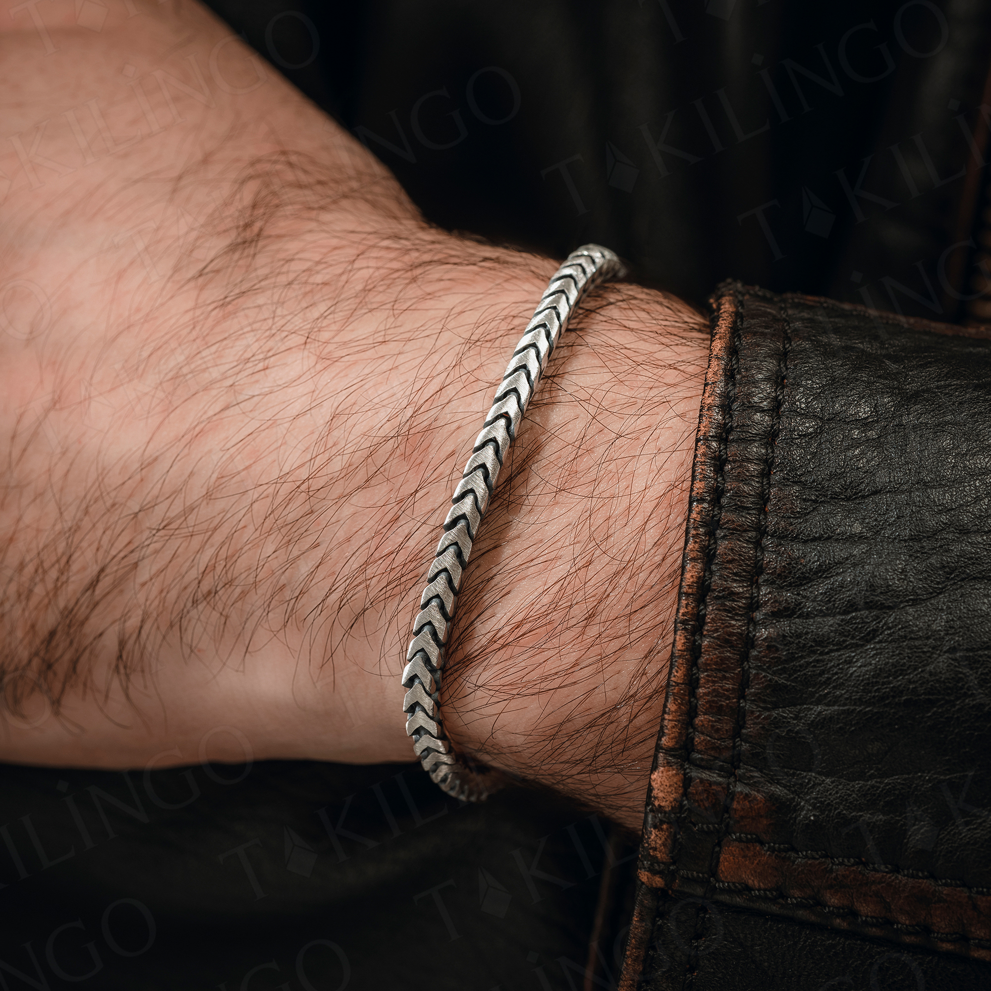925 Ayar Gümüş El İşlemeli Gurmet Zincir Model Erkek Bileklik
