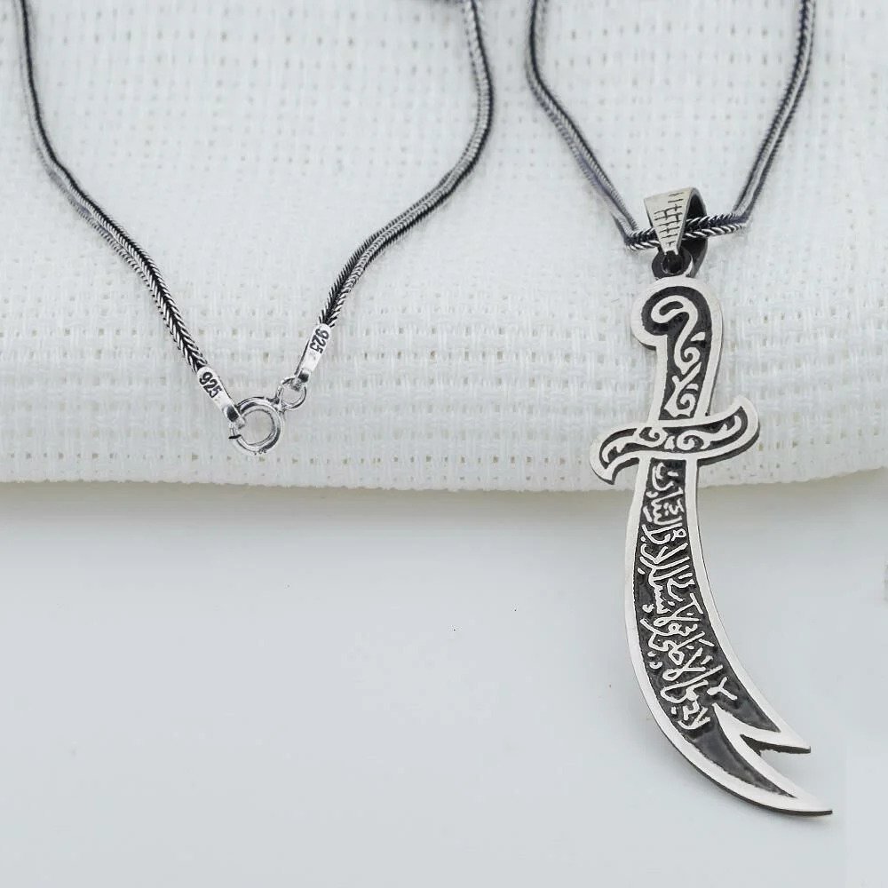 925 Ayar Gümüş Hz. Ali Kılıcı Zülfikar Model Erkek Kolye