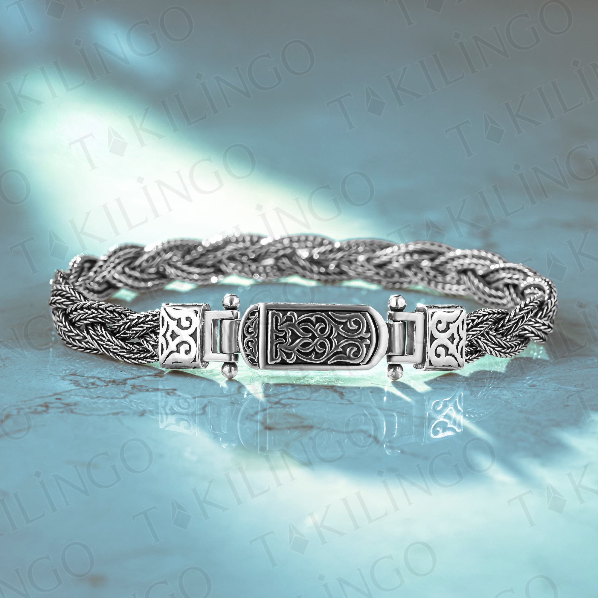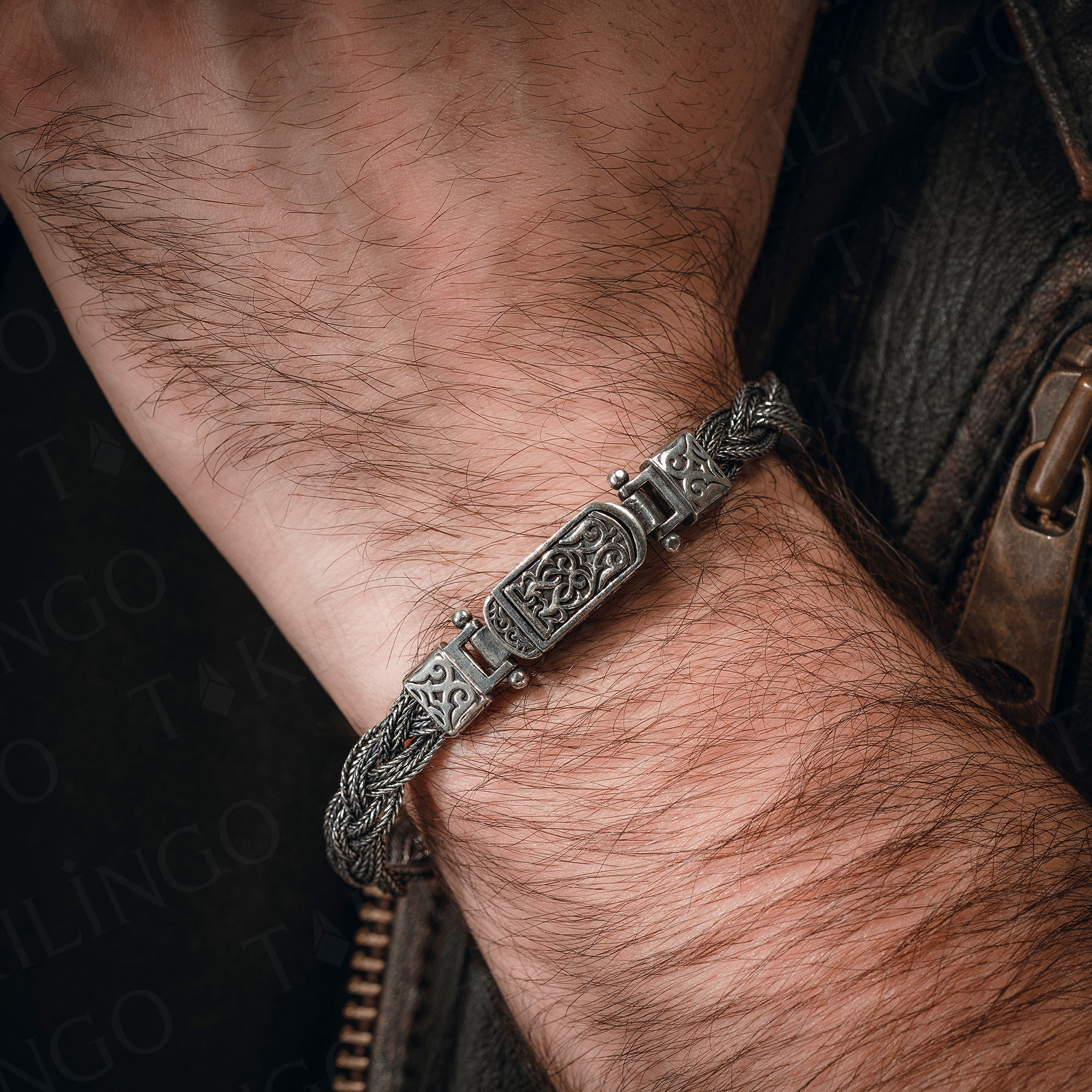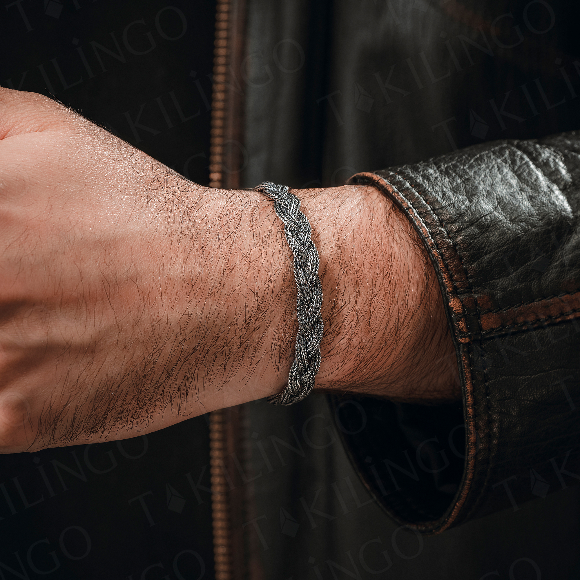 925 Ayar Gümüş Kazaziye Örgü Tasarım El İşlemeli Erkek Bileklik