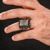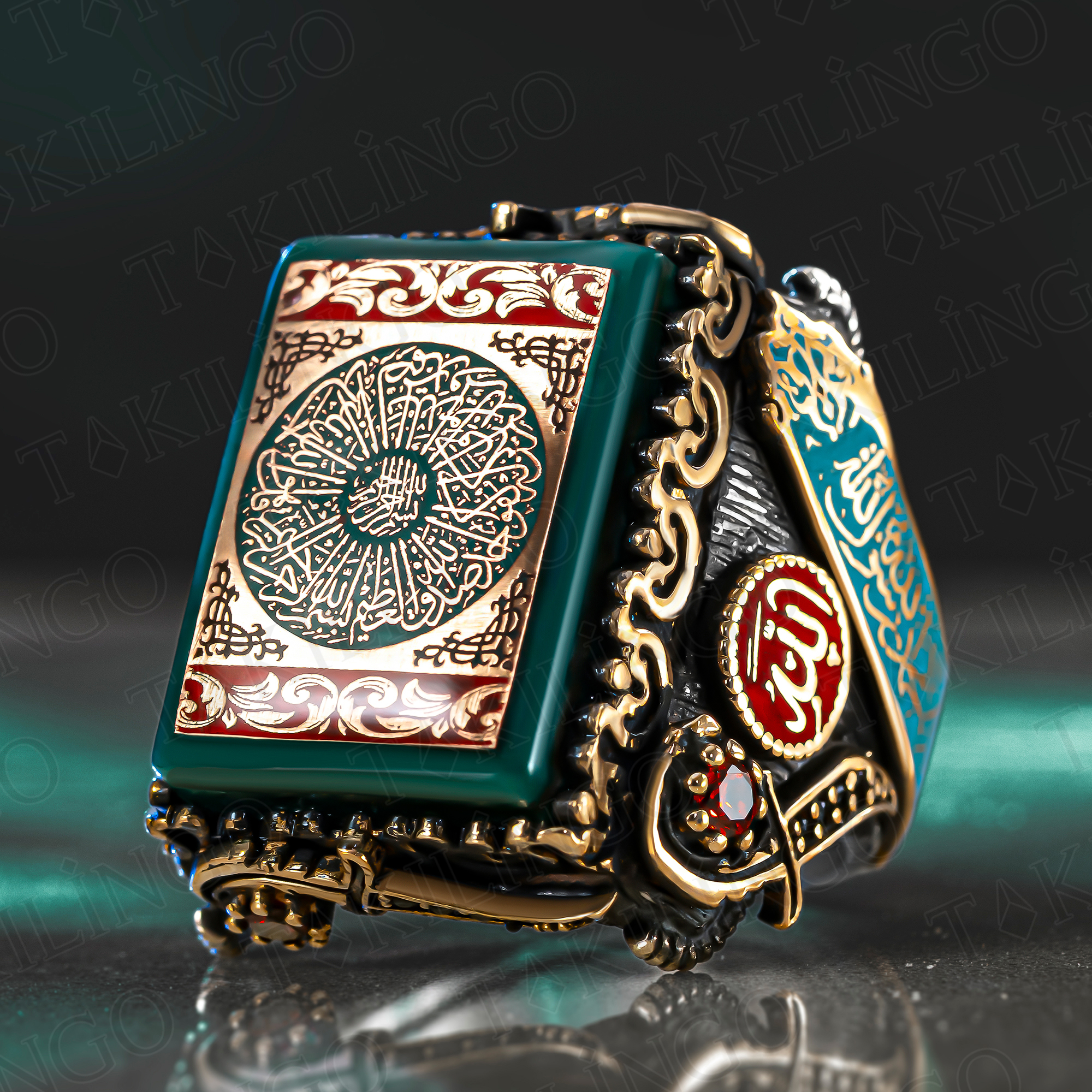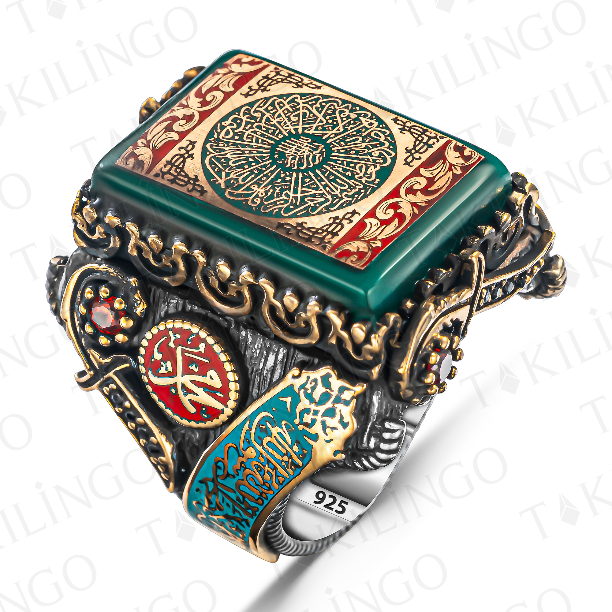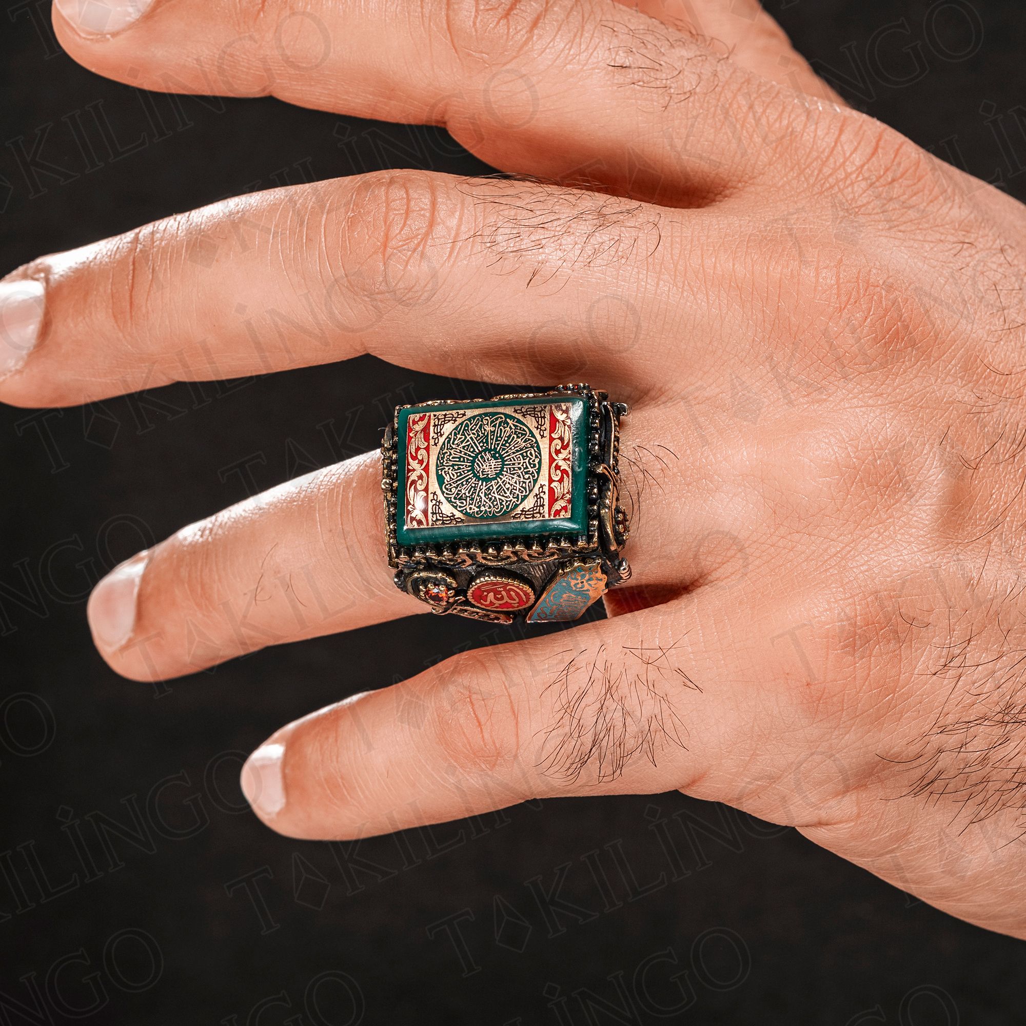 925 Ayar Gümüş Kehribar Taş Üzeri Fatiha Suresi İşlemeli Dualı Usta İşi Erkek Yüzük