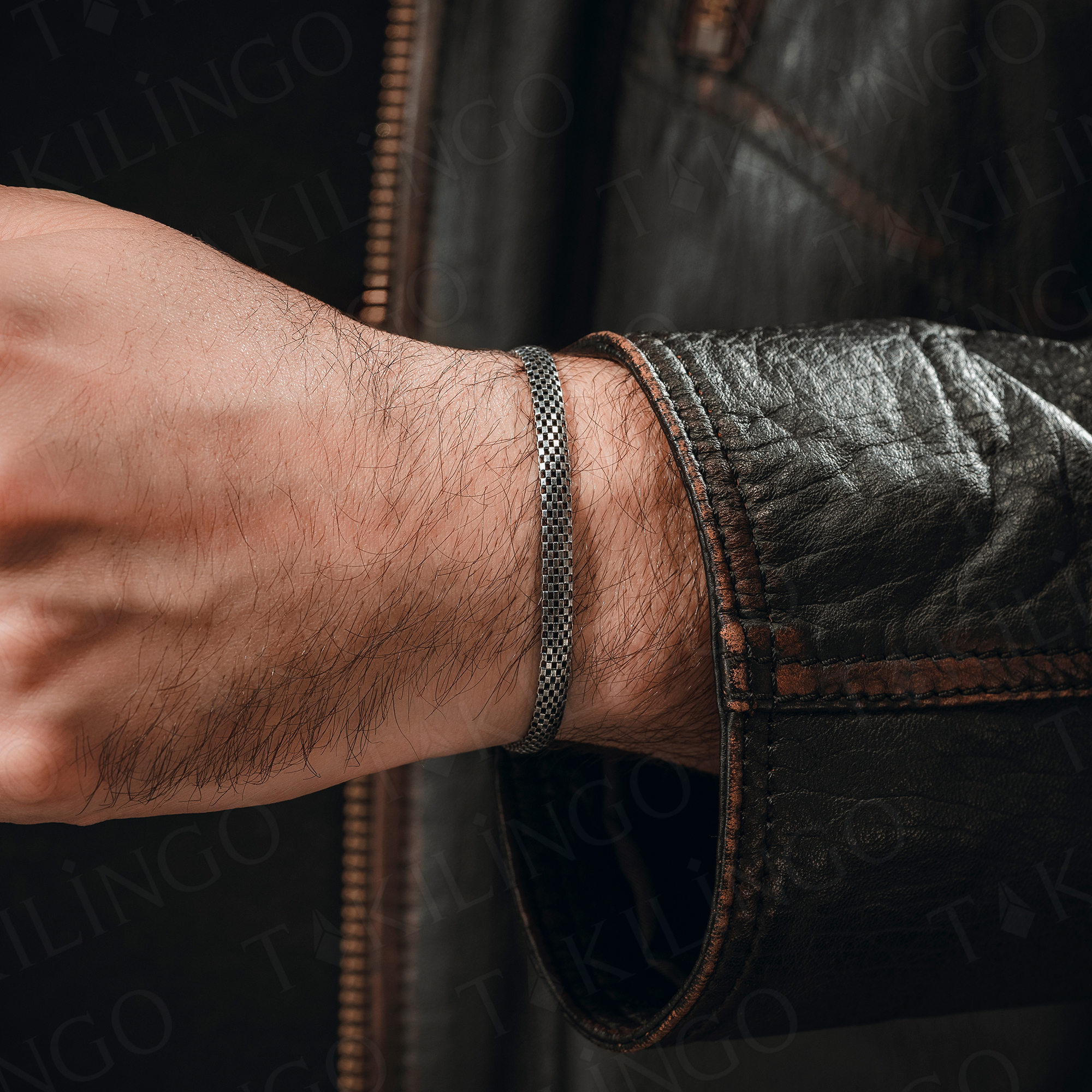 925 Ayar Gümüş Klasik Balık Sırtı İşlemeli Zincir Model Erkek Bileklik, balık sırtı örgüsünün zarif geçişlerini klasik gümüş şıklığıyla buluşturan sofistike bir tasarımdır. Akıcı ve dayanıklı yapısı bilekte konfor sunarken, göz alıcı işlemeleri stilinizi güçlü bir dokunuşla tamamlar. Zamansız ve kaliteli bir aksesuar arayan erkekler için mükemmel bir tercihtir.