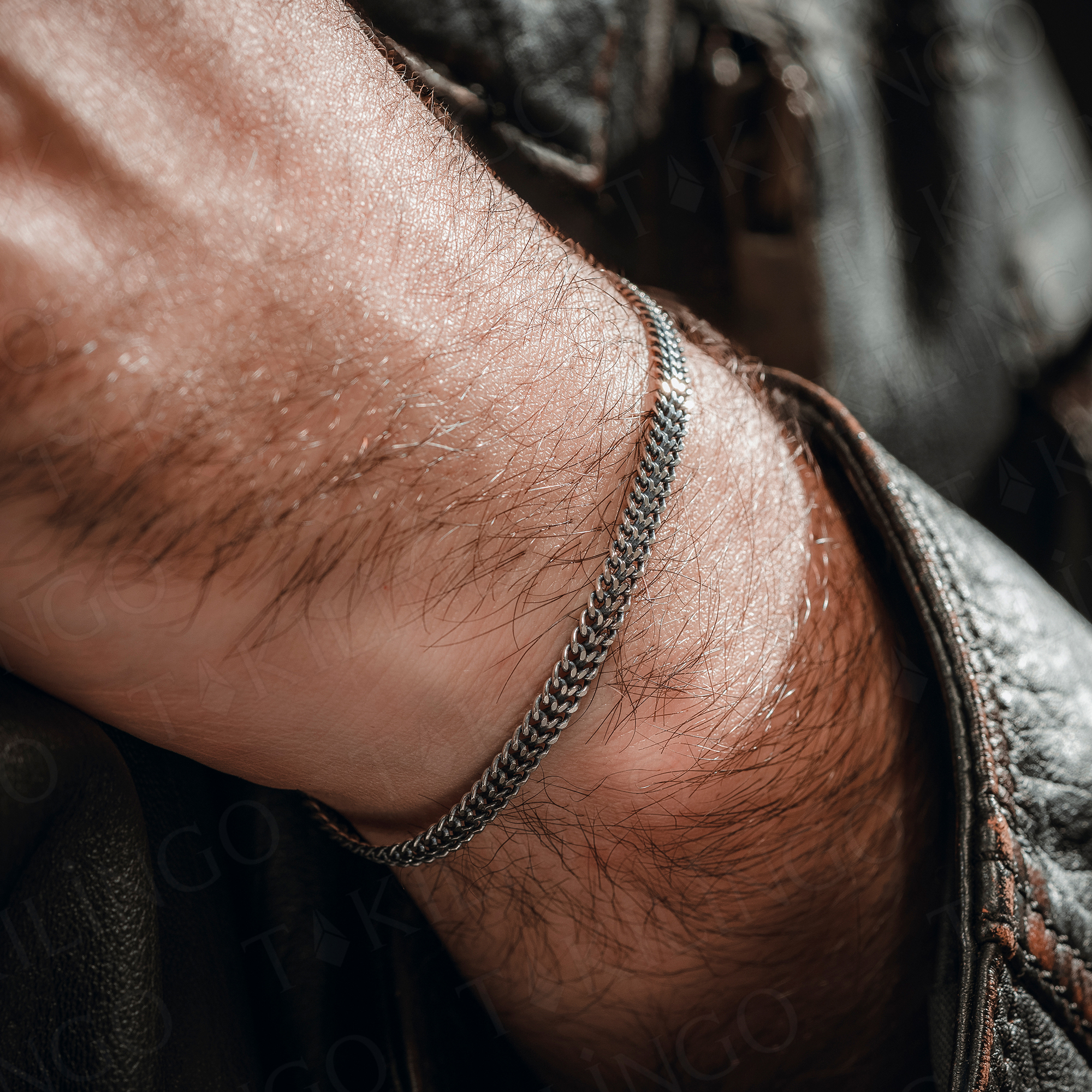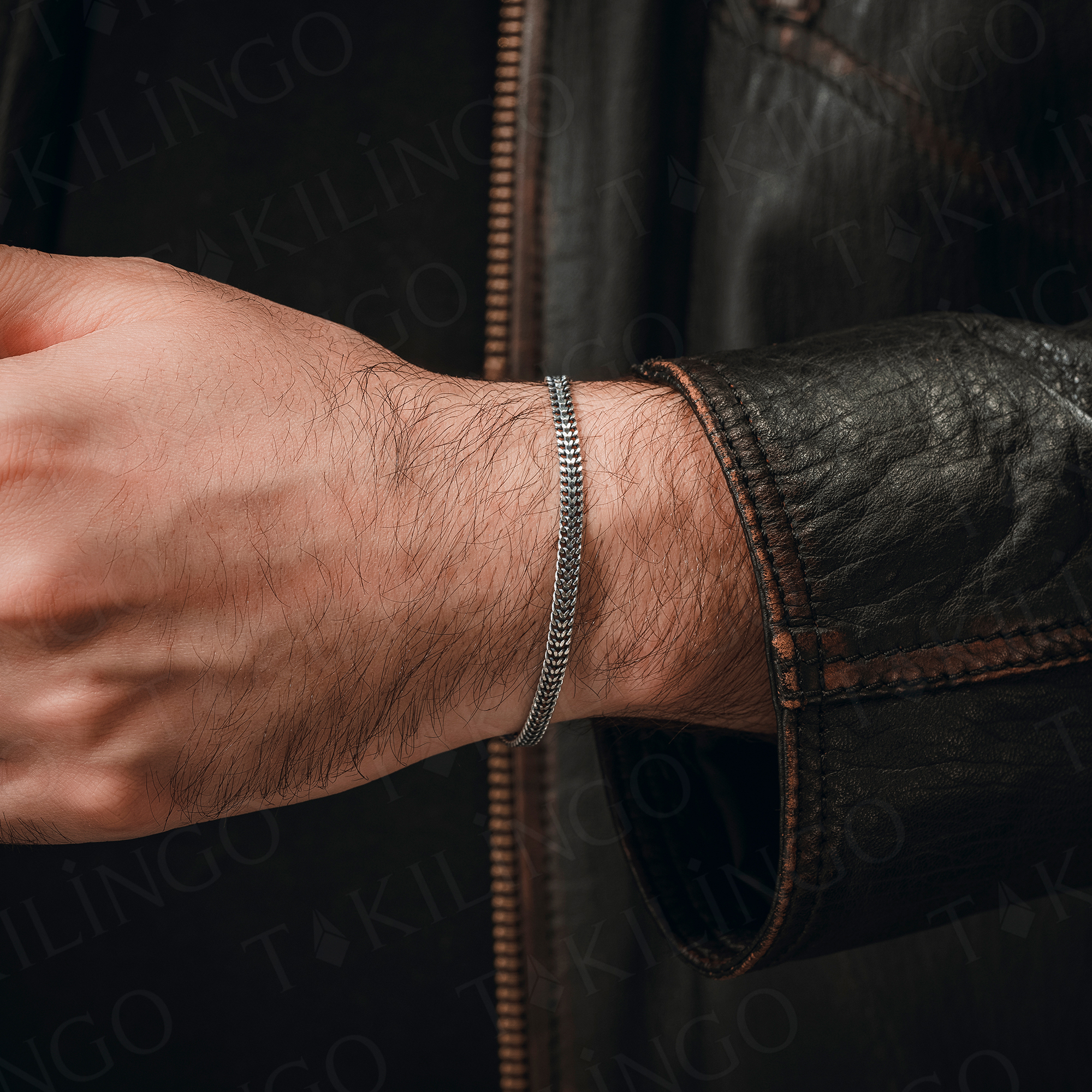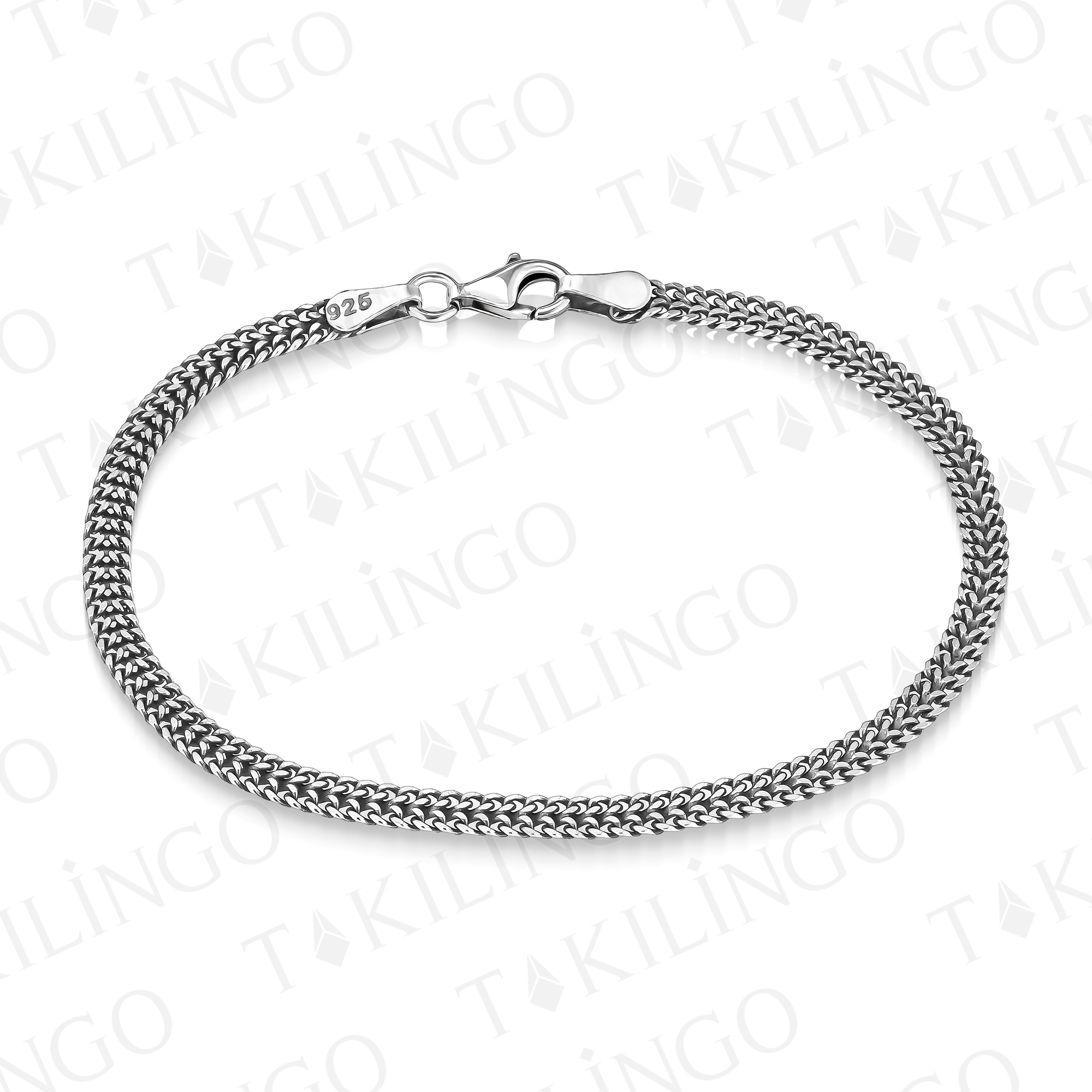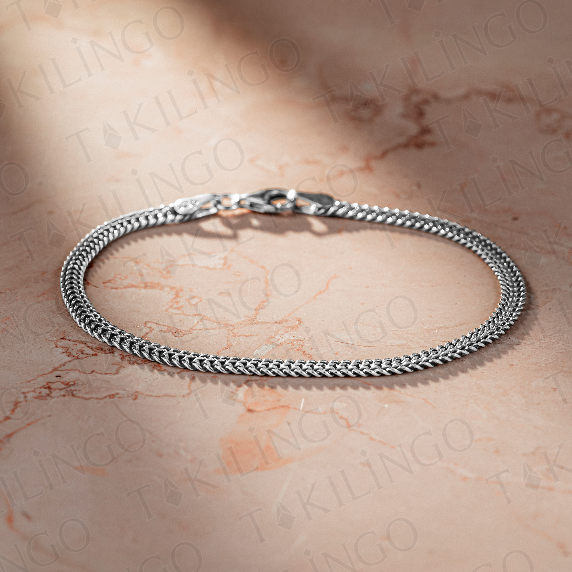 925 Ayar Gümüş Minimal Klasik Örgü Zincir Model Erkek Bileklik