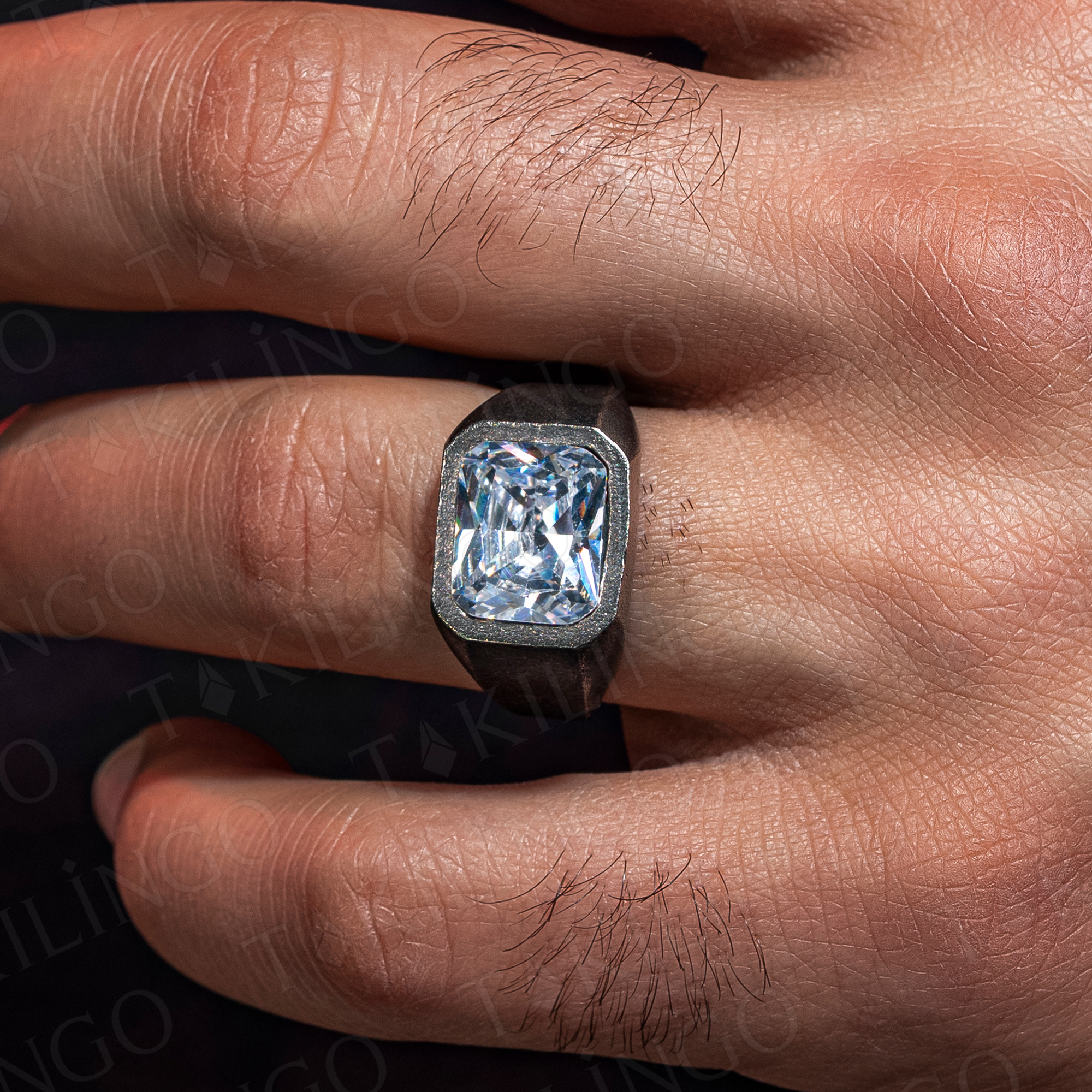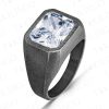 925 Ayar Gümüş Oksitli Beyaz Zirkon Taşlı Sade Erkek Yüzük