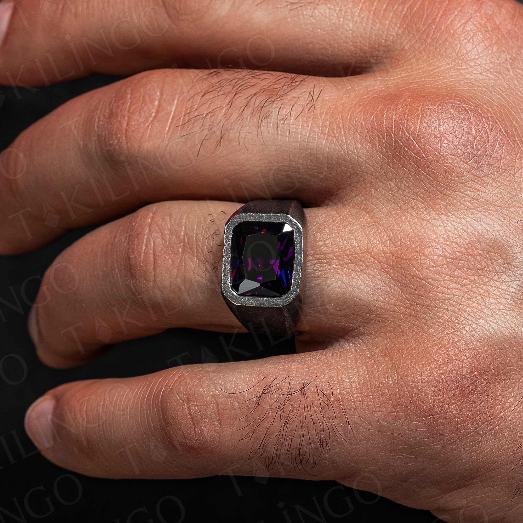 925 Ayar Gümüş Oksitli Mor Ametist Taşlı Sade Erkek Yüzük