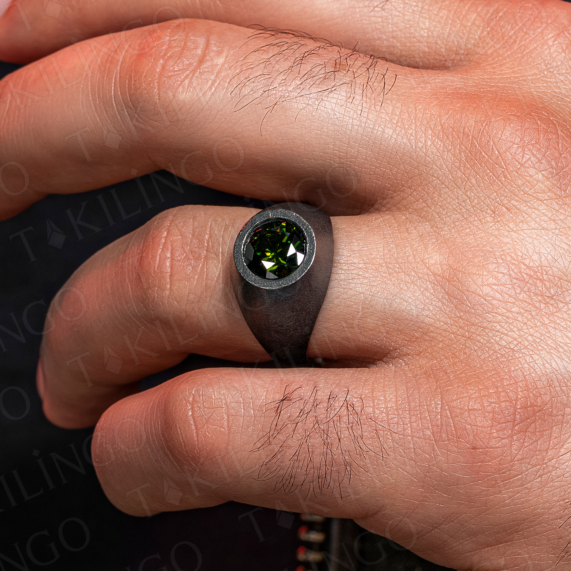 925 Ayar Gümüş Oksitli Yuvarlak Peridor Olivin Taşlı Sade Erkek Yüzük