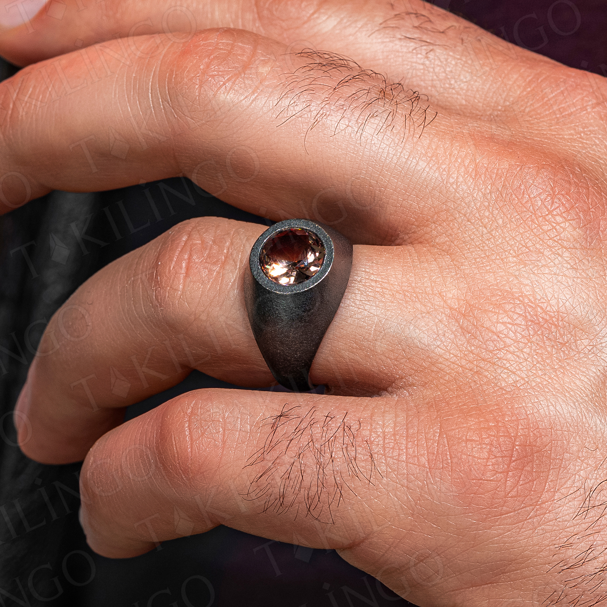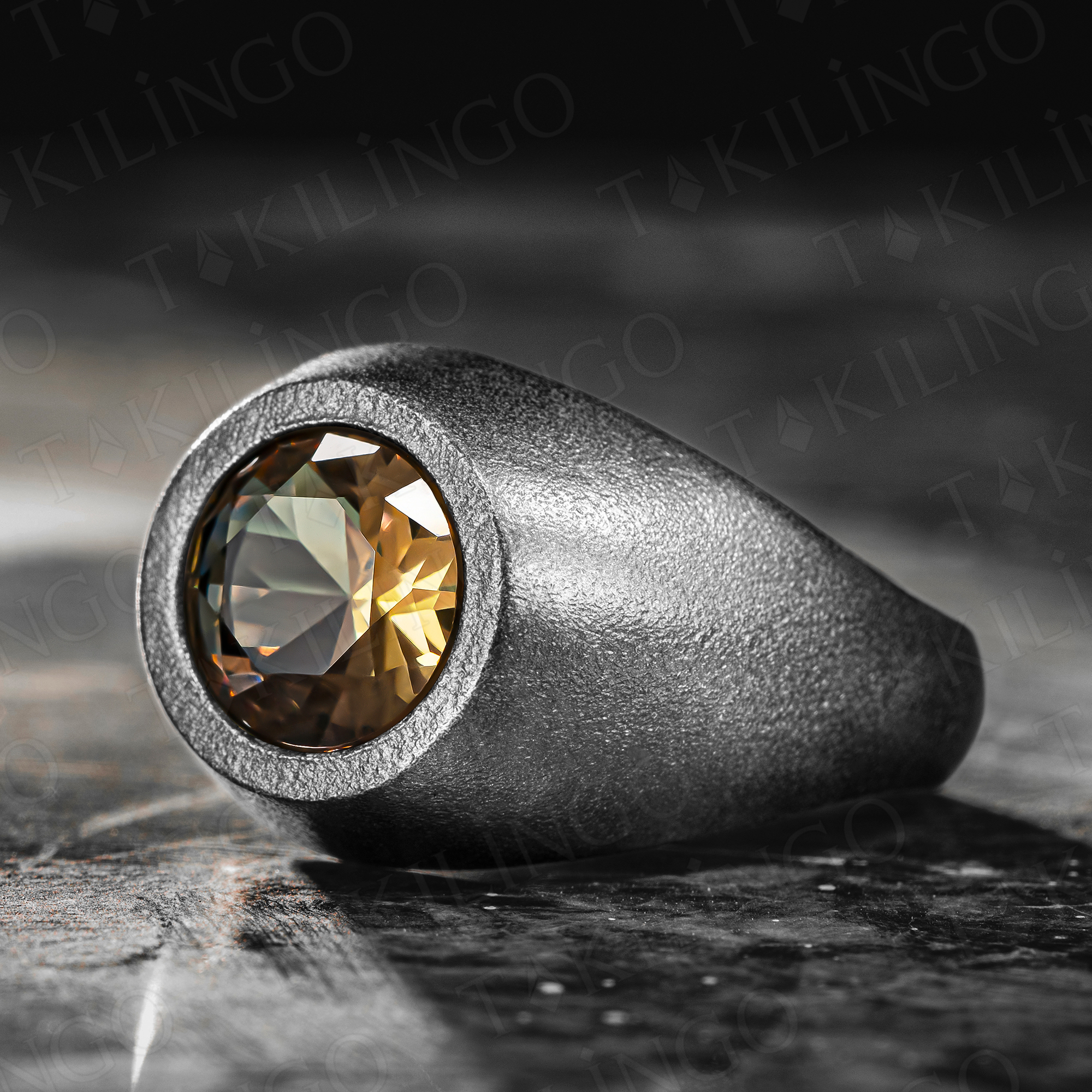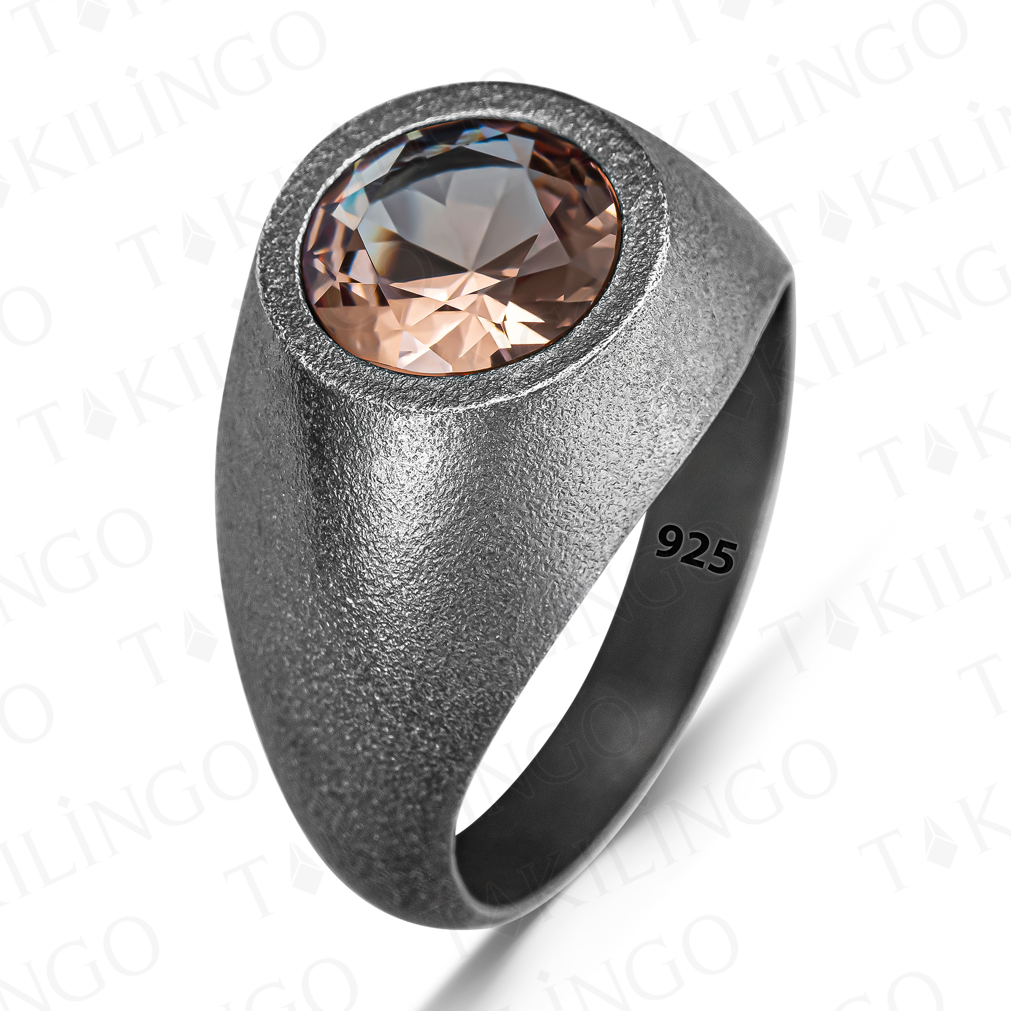 925 Ayar Gümüş Oksitli Yuvarlak Zultanit Taşlı Sade Erkek Yüzük