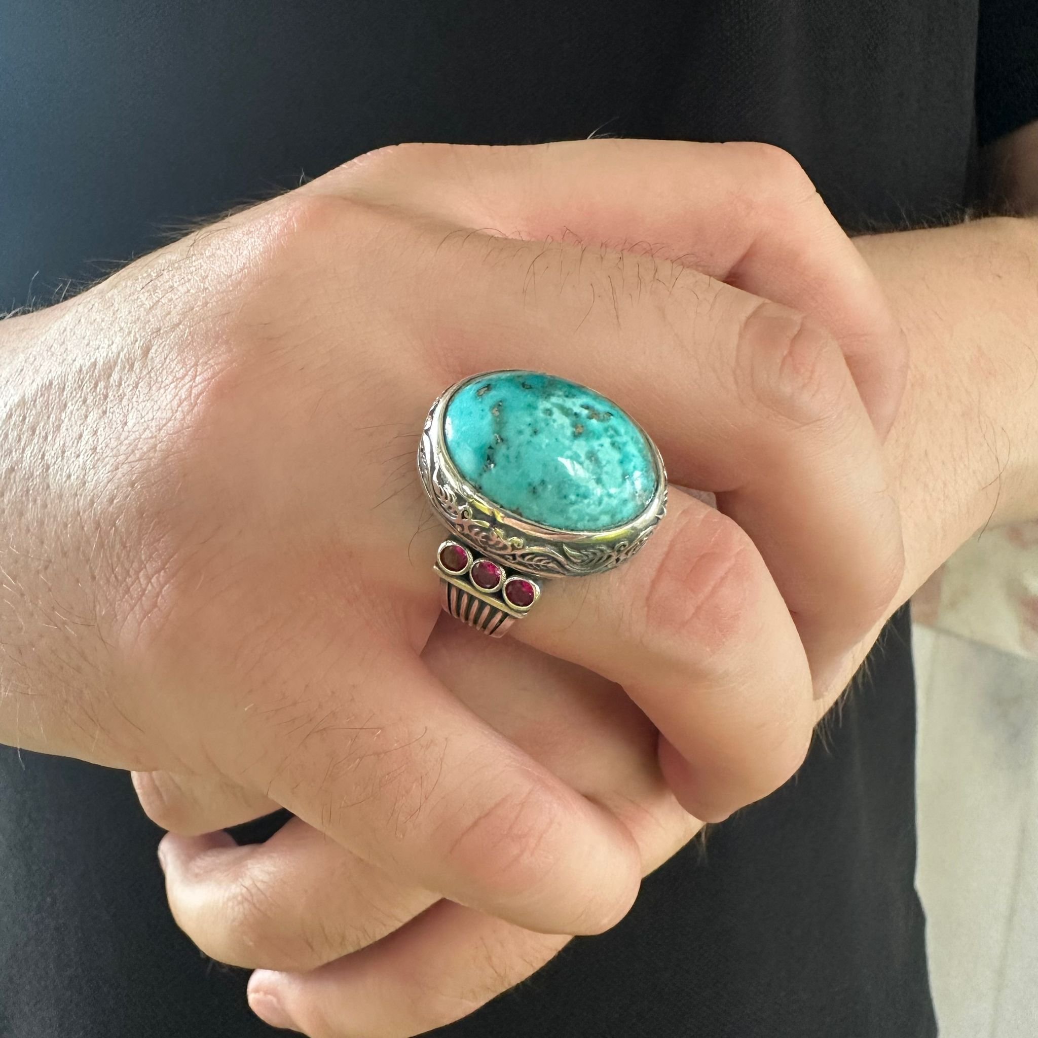 925 Ayar Gümüş Orijinal Firuze Taşlı Usta İşi Erkek Yüzük