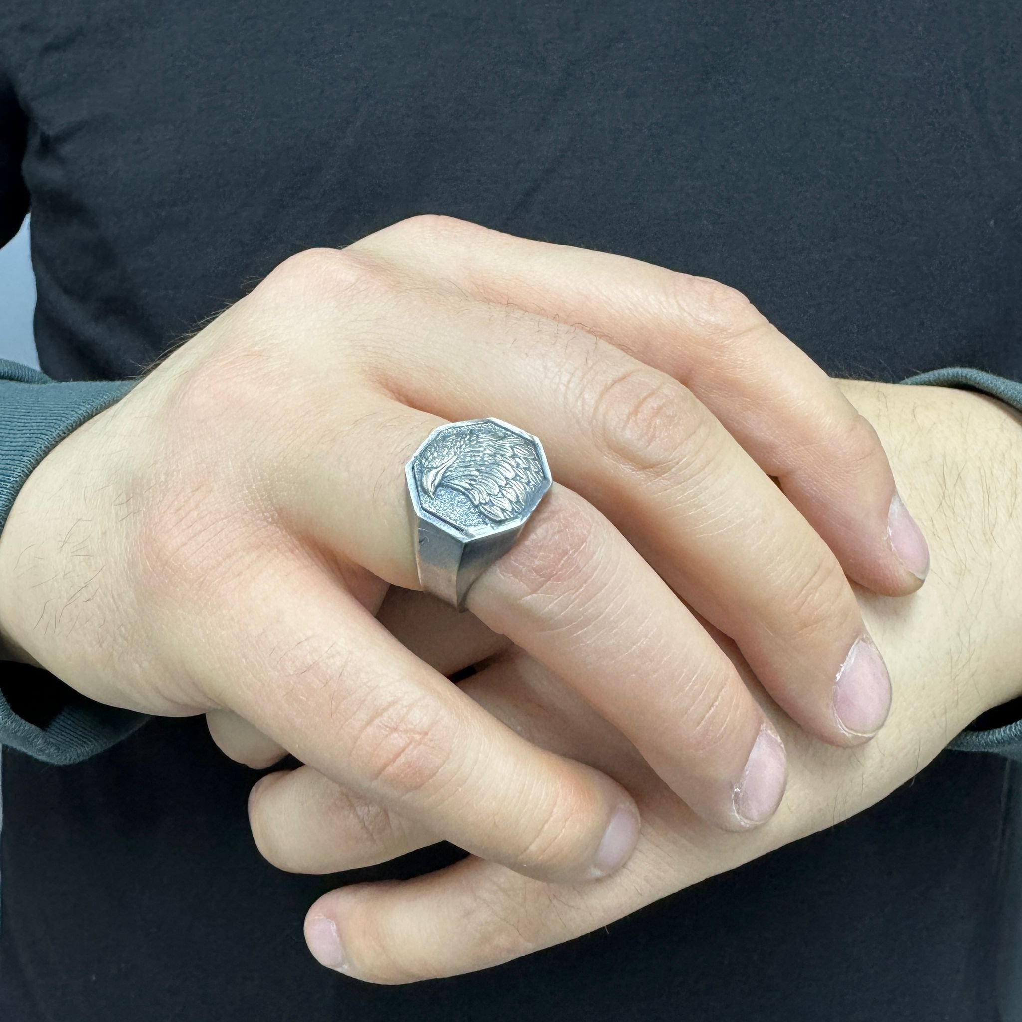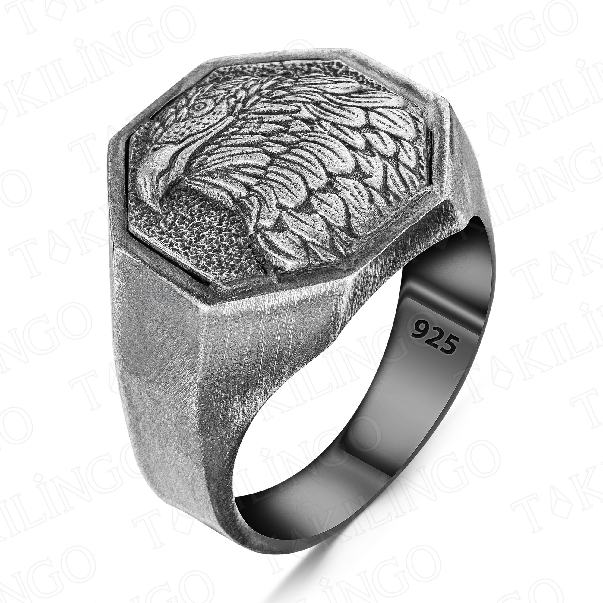 925 Ayar Gümüş Taşsız Kartal Kuşu Desenli Erkek Yüzük