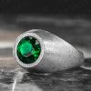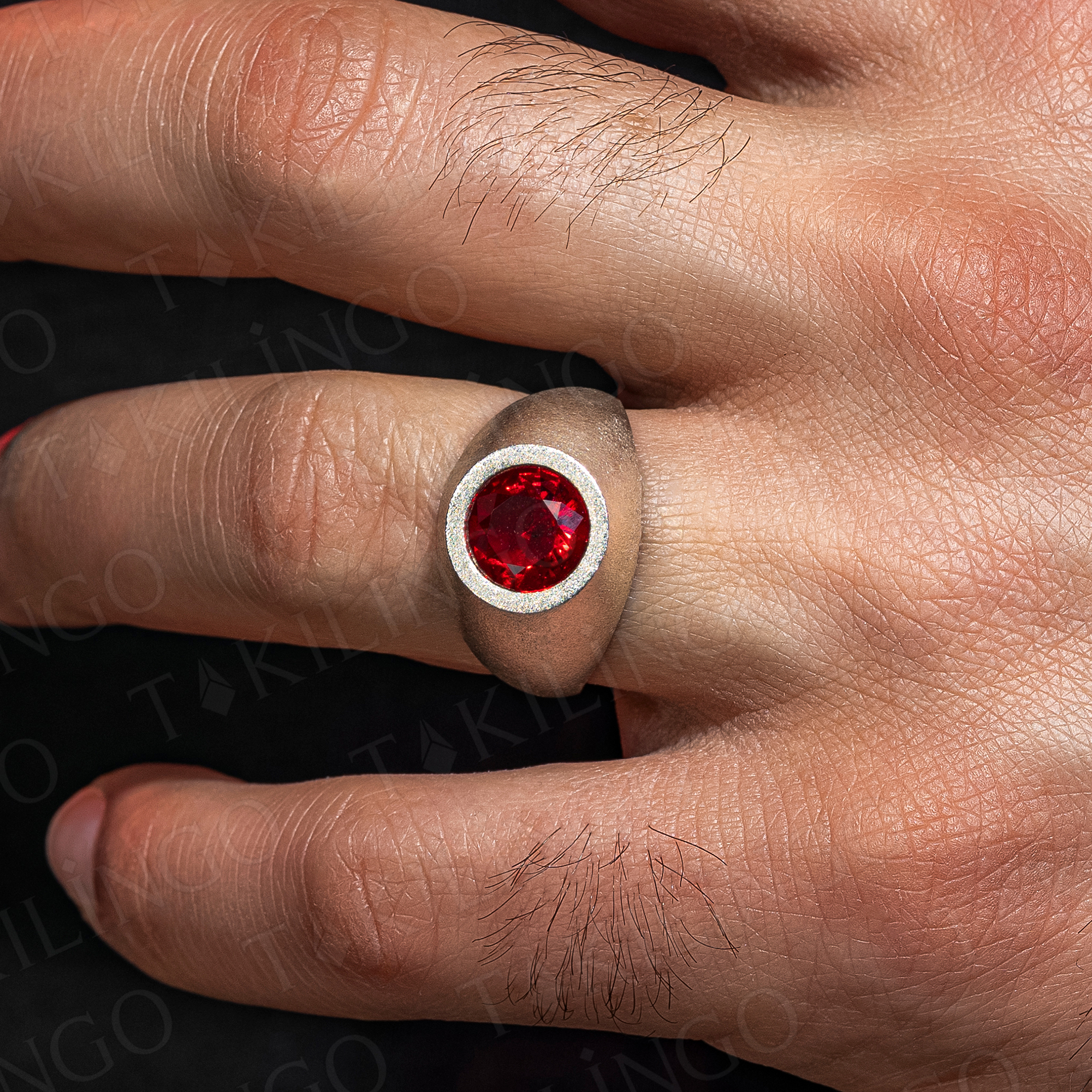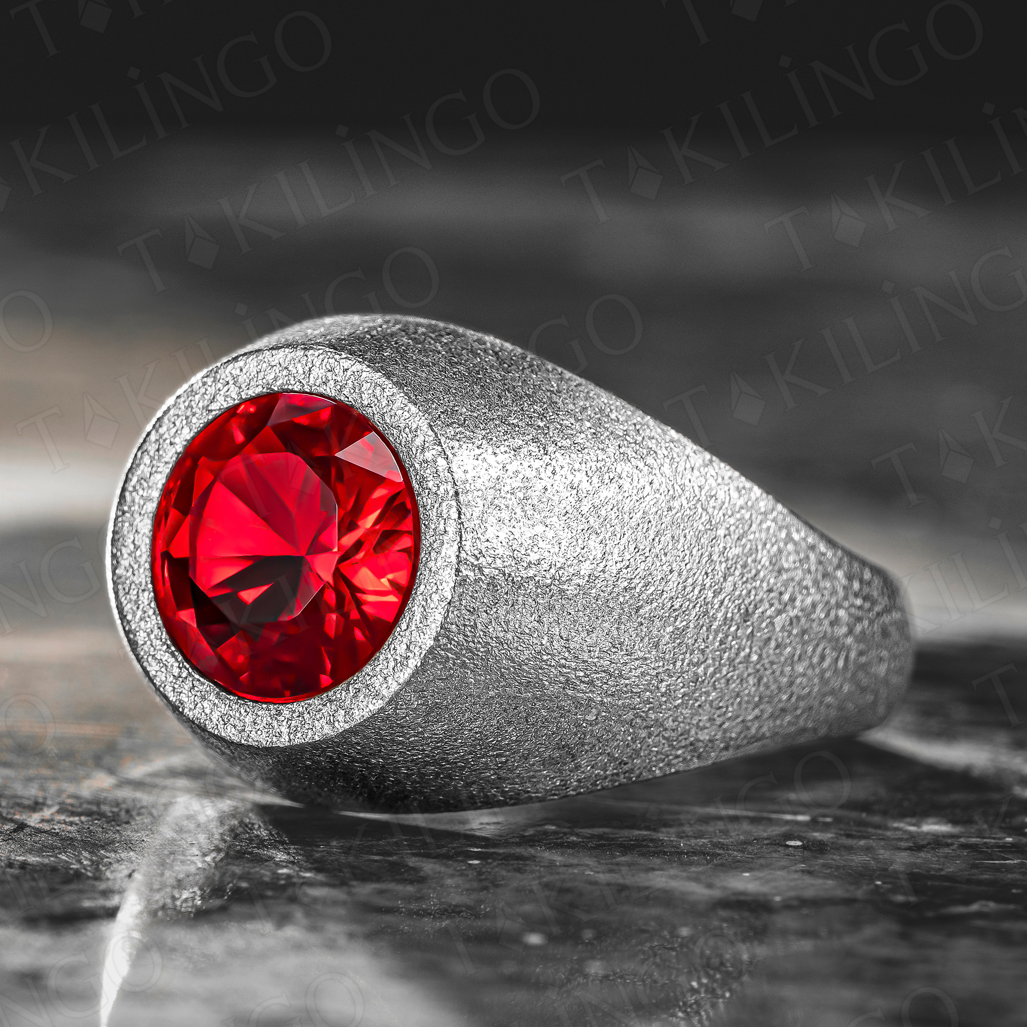 925 Ayar Gümüş Yuvarlak Kırmızı Ruby Taşlı Sade Erkek Yüzük