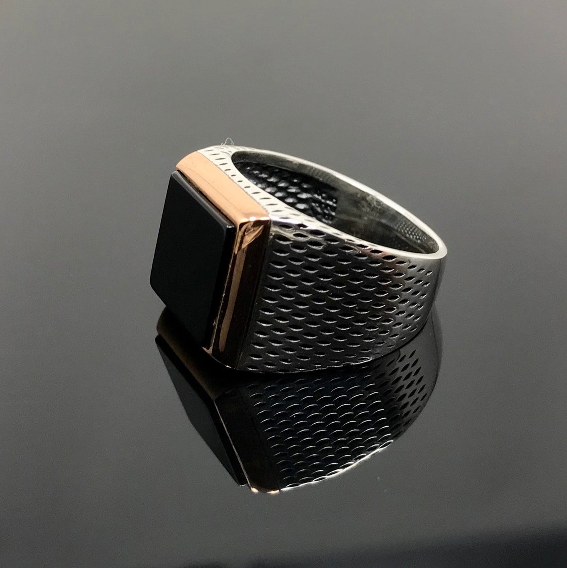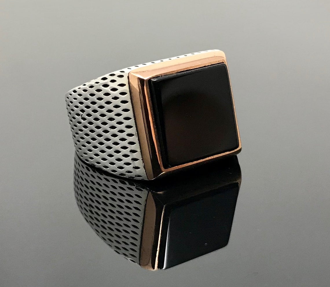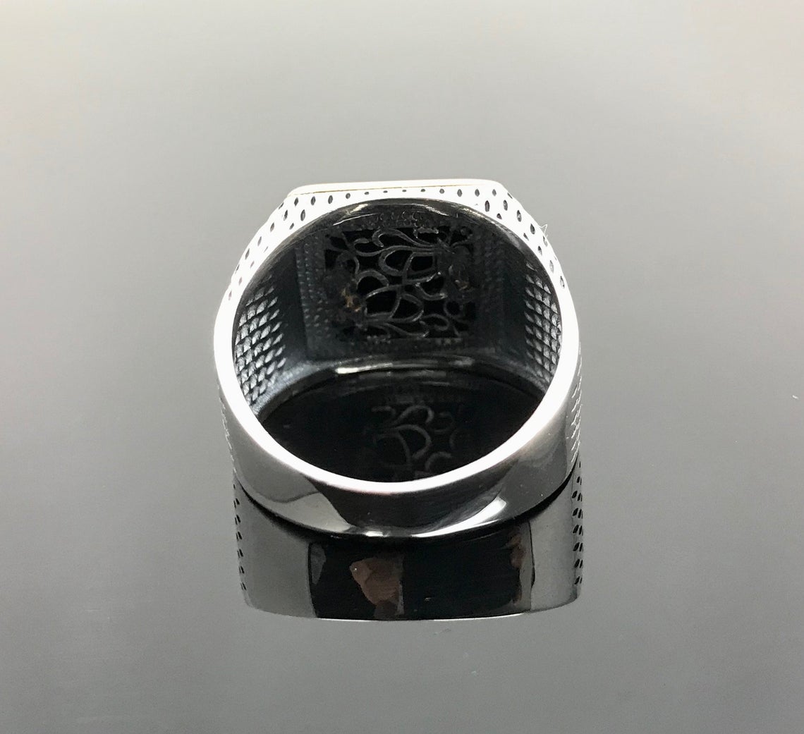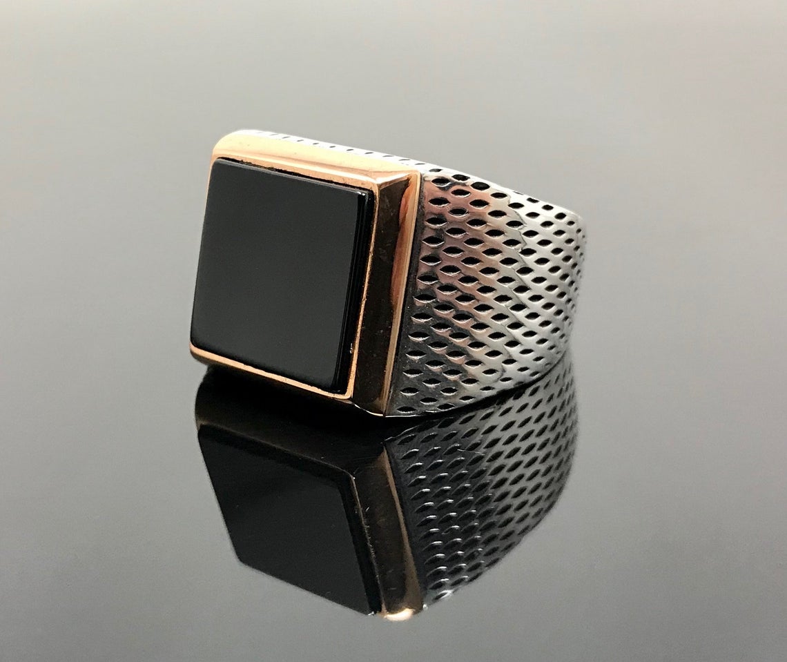 “Siyah Oniks Taşlı Kare Kasa Nokta İşlemeli Gümüş Erkek Yüzük” için yorum yapan ilk kişi siz olun Yanıtı iptal et
